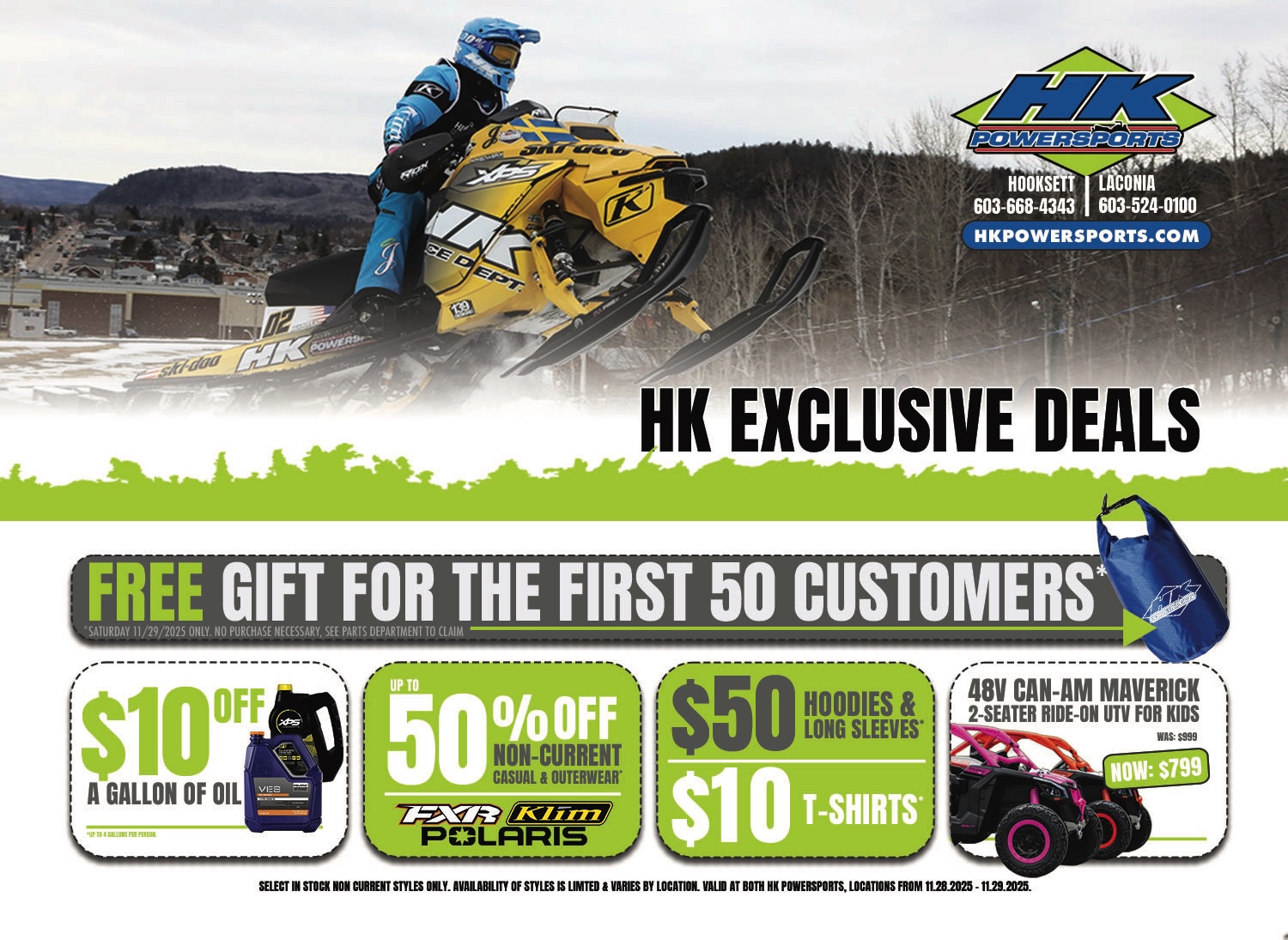 - FREE Gift for the First 50 Customers: Be one of the first through the door and snag an exclusive HK Powersports winter gift!